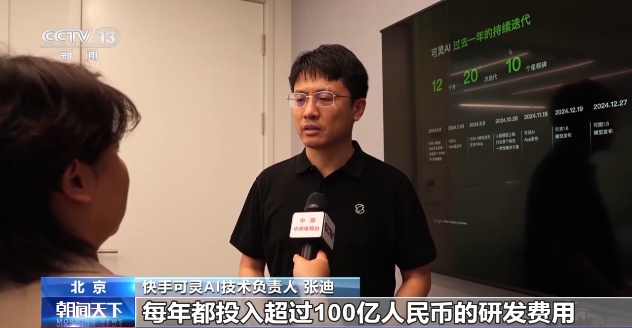 快手可灵AI技术负责人 张迪:每年都投入超过100亿元人民币的研发费用,我们公司在创新上有一定的“容错率”,给了非常强大的一个支持。今天我们已经跟各行各业进行了广泛的合作,我们也非常相信,通过AI赋能,很多行业能够进入到一个新的发展的黄金时期。
