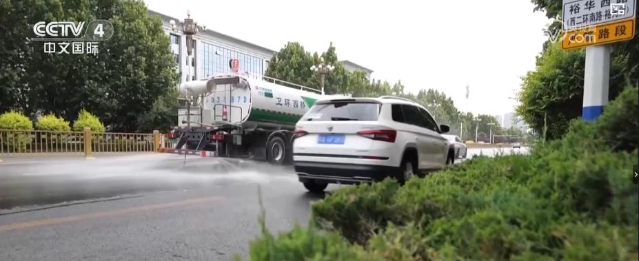 连日来,石家庄出现持续高温天气,局部地区达40℃。当地启动应急预案,出动洒水车进行洒扫作业降温降尘。