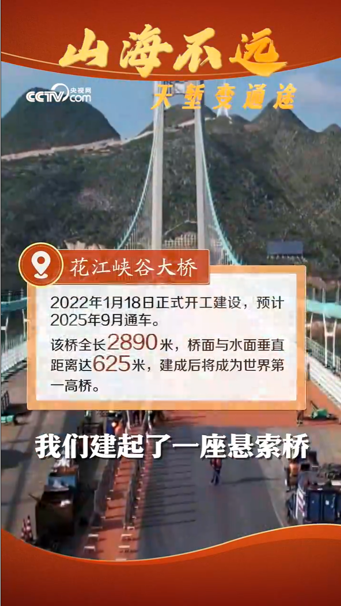 时下,3万多座桥梁将“地无三尺平”的贵州变成“高速平原”,全长2712公里的沙漠铁路环线让塔克拉玛干不再“与世隔绝”,464.37万公里长的硬化路加快织密农村公路网络……中国人民以“越是艰险越向前”的拼搏劲头,让天涯变咫尺、把天堑变通途。