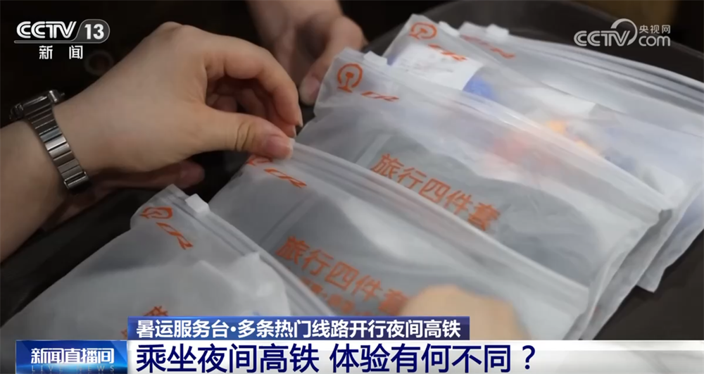 相比于白天开行的高铁列车,记者在夜间高铁上发现,旅客的乘车体验有很大不同。比如在环境氛围上,高铁车厢的灯光会调暗;在车厢用品上,列车会增配毛毯、一次性耳塞和眼罩等睡眠用品;乘务员也都会进行“无干扰”服务,让旅客安心休息。