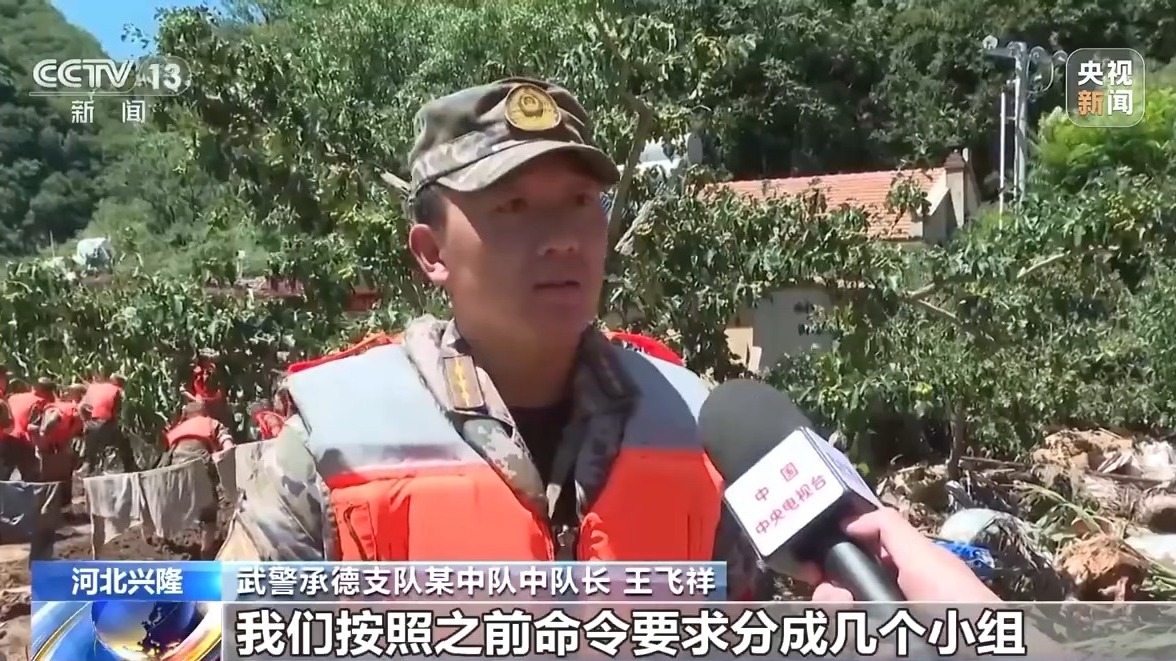 武警承德支队某中队中队长 王飞祥:我们按照之前命令要求分成几个小组,抢救重要的物资,以及帮助老百姓分发重要的这些食物和水。