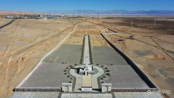 在冷湖镇东南方向,一座高耸的纪念碑引人注目。这里是冷湖四号公墓,长眠着自青海油田开发以来,因公、因病去世的400多位油田职工及家属。他们把“爱国、创业、奉献、实干”镌刻在丰碑之上。