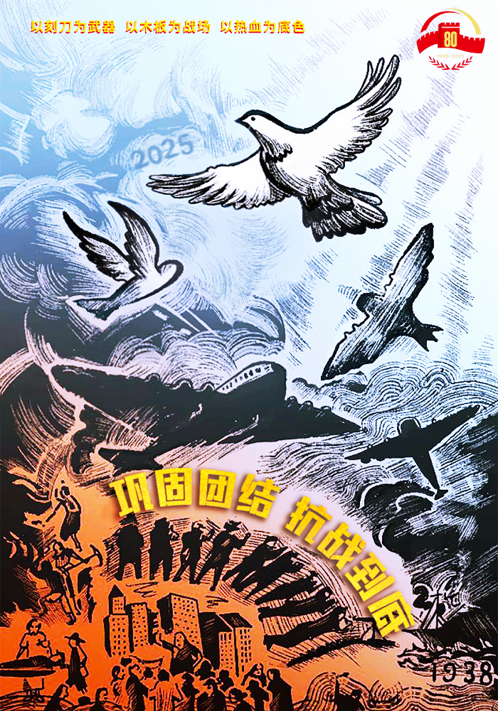 寻访结束时,00后大学生刘一竹在自己设计的海报上方画上了翱翔的和平鸽。她感慨地说:“80多年过去,版画上的刀锋仍时刻提醒我们:铭记历史启示,勇担时代重任,让青春之光照亮和平的未来。”