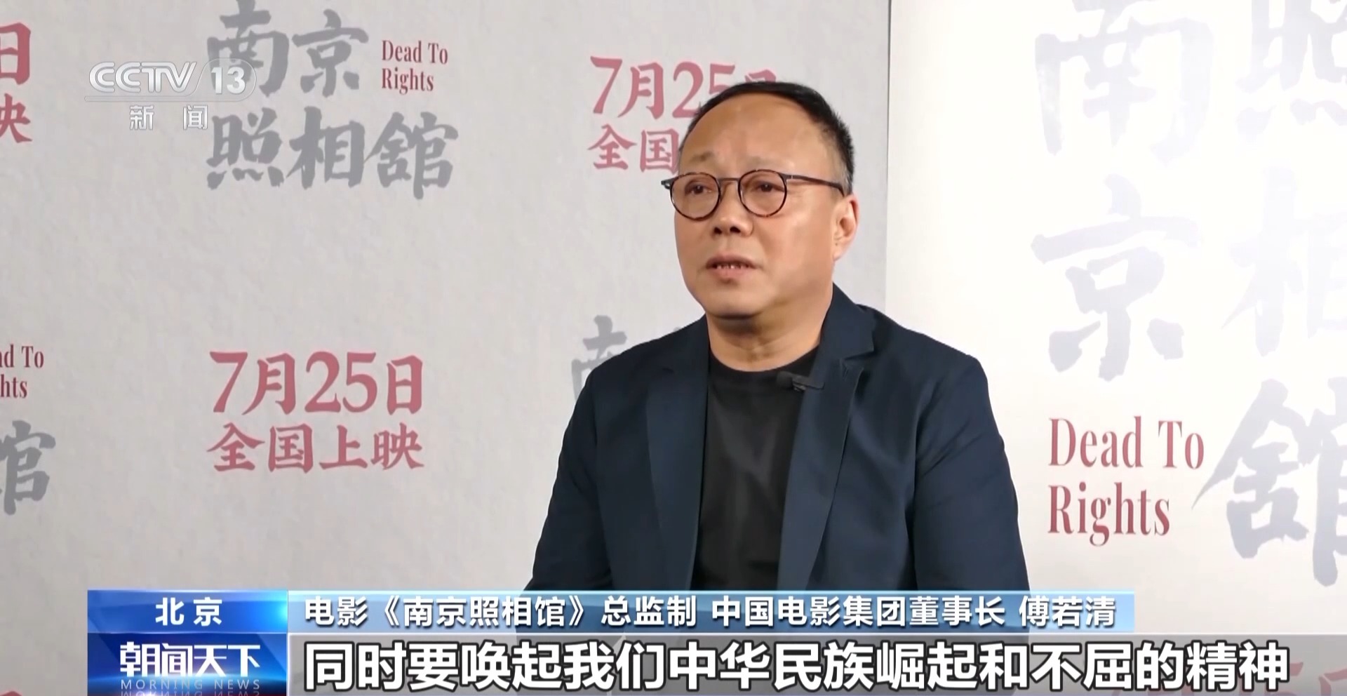 电影《南京照相馆》总监制、中国电影集团董事长 傅若清:我们一是要让大家铭记曾经遭受到的屈辱,同时要唤起我们中华民族崛起和不屈的精神。今天的南京和80多年前的南京,同一张照片或者同一个角度拍下来,你能够感受到新时代我们创造了多少中华民族的辉煌。