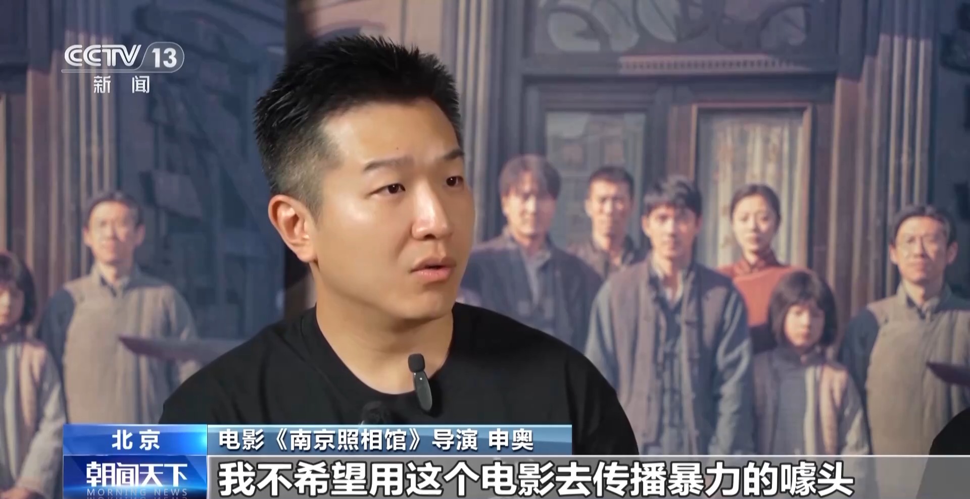 电影《南京照相馆》导演 申奥:我不希望用这个电影去传播暴力的噱头、去传播仇恨的种子,而是希望观众更多的立足于当下,去展望和平,珍惜现在的生活,去提醒他们铭记历史、珍惜和平,吾辈自强。