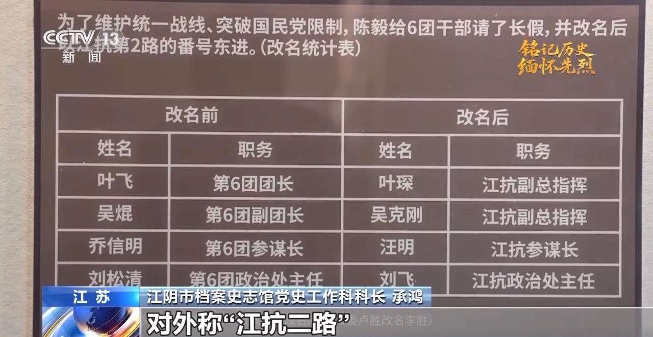 江阴市档案史志馆党史工作科科长 承鸿:1939年4月,新四军军部部署六团准备向东路地区发展。5月,六团在叶飞、吴焜等率领下,从(江苏)茅山地区出发东进。为了防止国民党顽固派阻挠和破坏,六团沿用“江南抗日义勇军”的番号,以地方抗日武装的名义,对外称江抗二路。吴焜化名吴克刚,任副总指挥兼二路司令,随同叶飞东进。