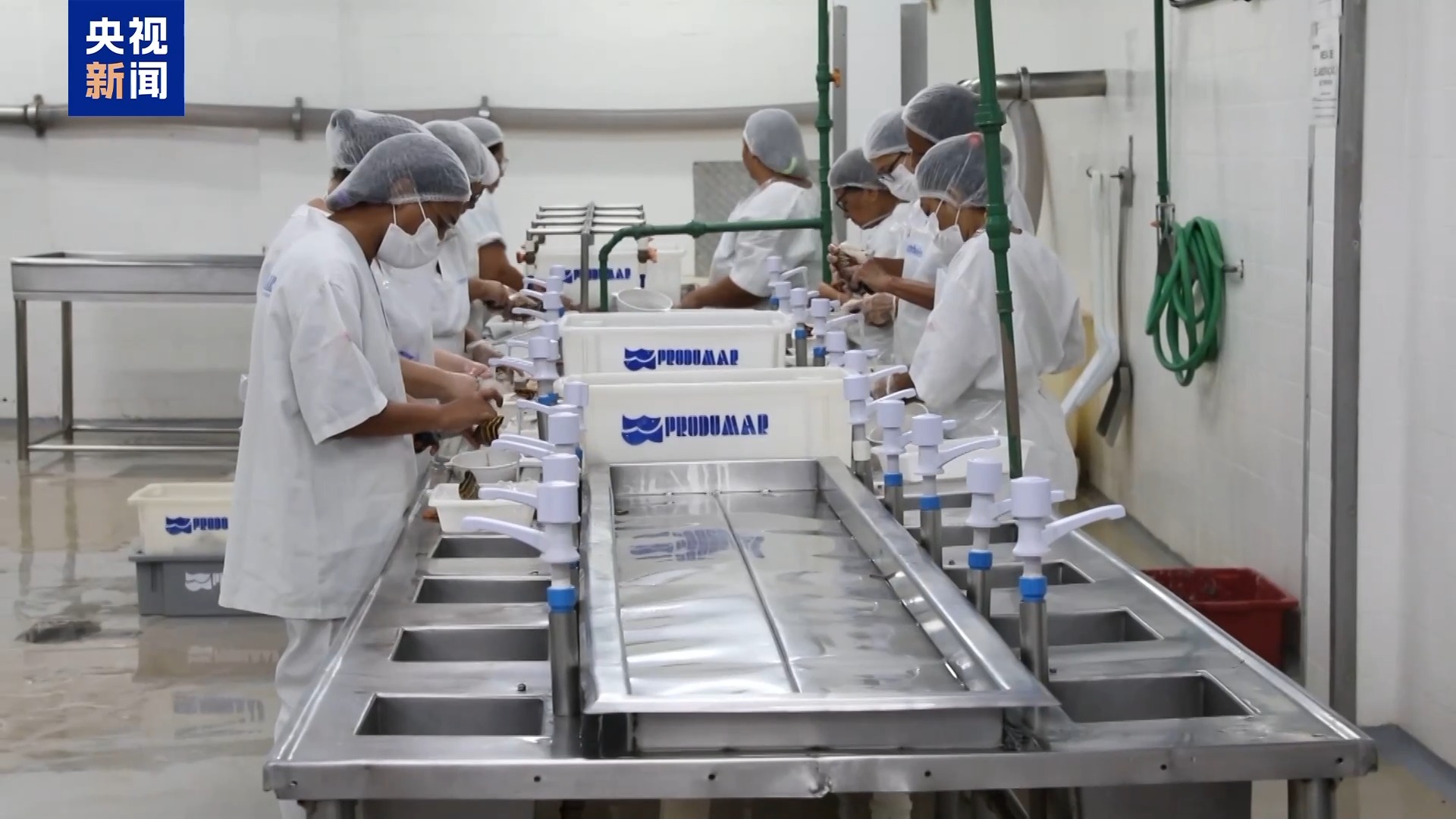 纳塔尔一海鲜加工出口公司负责人 阿里马尔·弗朗萨·菲略:这是我们加工所有出口到美国海鲜的车间。过去的情况是我们早上卸下的海鲜,第二天早上就已送到美国迈阿密,供应美国市场。我们有非常高效的产品即时供应能力。如今如你们所见,车间一切都停了下来。