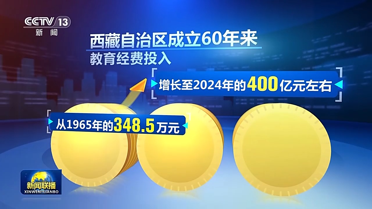 西藏自治区成立60年来,教育经费投入从1965年的348.5万元增长至2024年的400亿元左右。从2012年开始,西藏在全国率先建立从学前到高中的15年公费教育体系。如今的西藏,已建成涵盖学前教育、基础教育、职业教育、高等教育等完整的现代教育体系。从文盲率高达95%以上,到如今的新增劳动力平均受教育年限达13.1年,西藏教育实现了“历史性跨越”。