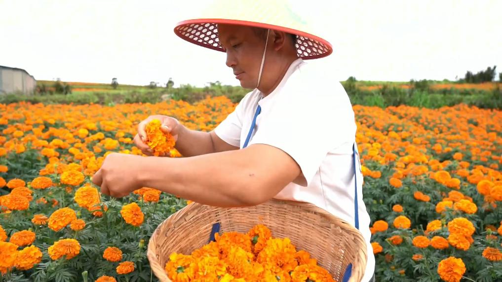 农户有了保底价吃下“定心丸”,村集体通过建设、管理收储设施入股,每吨花能分红30元境。2025年,蒙自市种植万寿菊15.1万亩,预计今年鲜花收购量将可超45万吨,鲜花产值突破5.4亿元。
