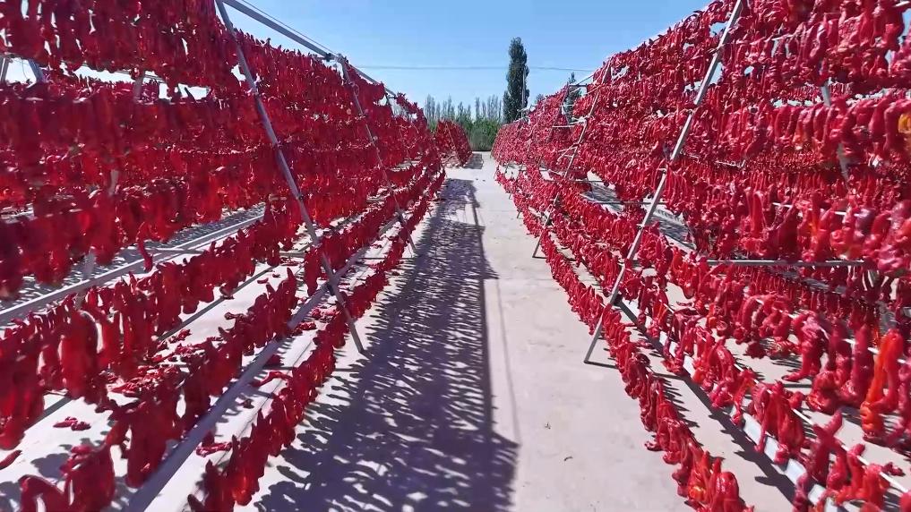 今年巴州共种植食用辣椒一万多亩,采收及晾晒工作将持续至十月底。