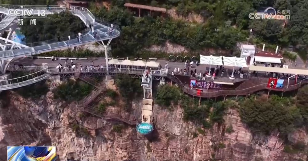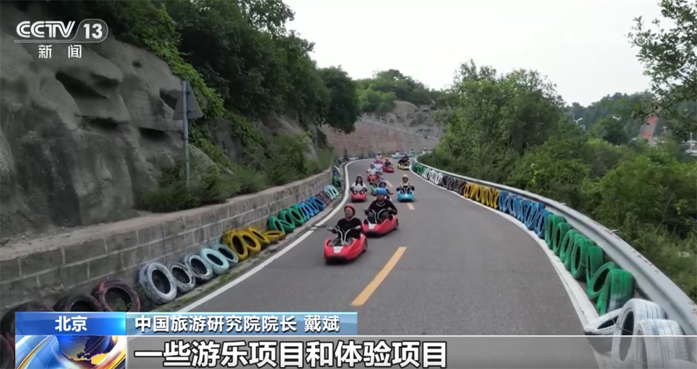 坐着电梯登上山顶,在山西的北武当山,游客还可以坐着山地滑板车轻松下山,在滑行中沉浸式感受山林清凉。