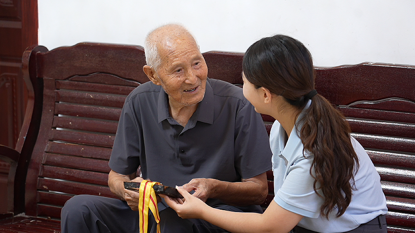 97岁的于文彬唱起了一首老歌,
