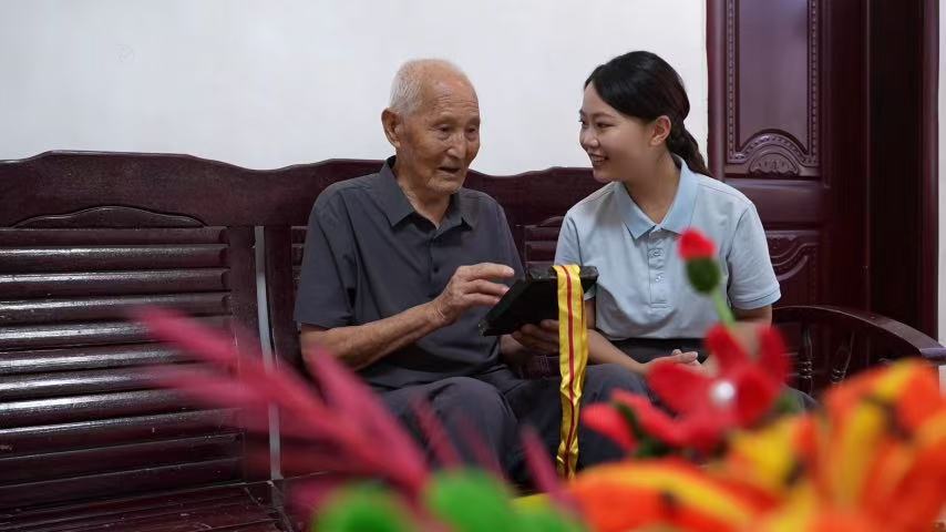 老人对后辈喃喃叮咛:
