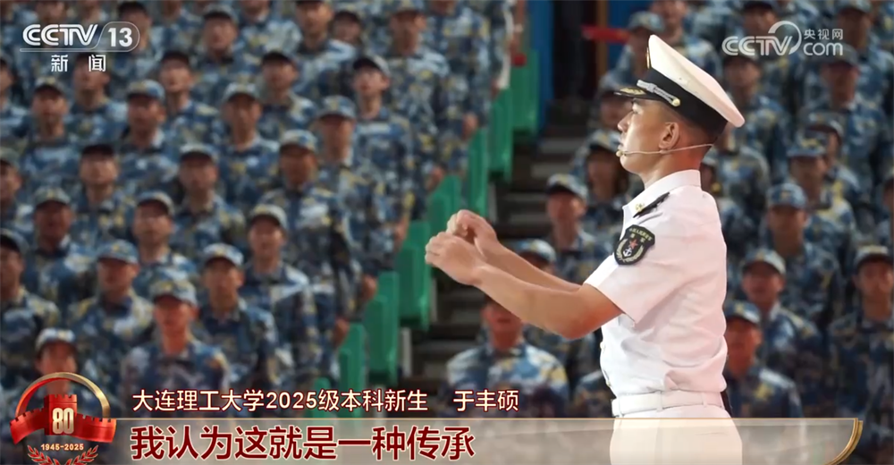大连理工大学2025级本科新生于丰硕称:“当我看到受阅官兵步履铿锵、整齐划一地从天安门城楼前走过,抗战老兵在城楼上深情注视的时候,我认为这就是一种传承。进入新时代,振兴中华、增强综合国力的接力棒已然传到吾辈青年肩头。”