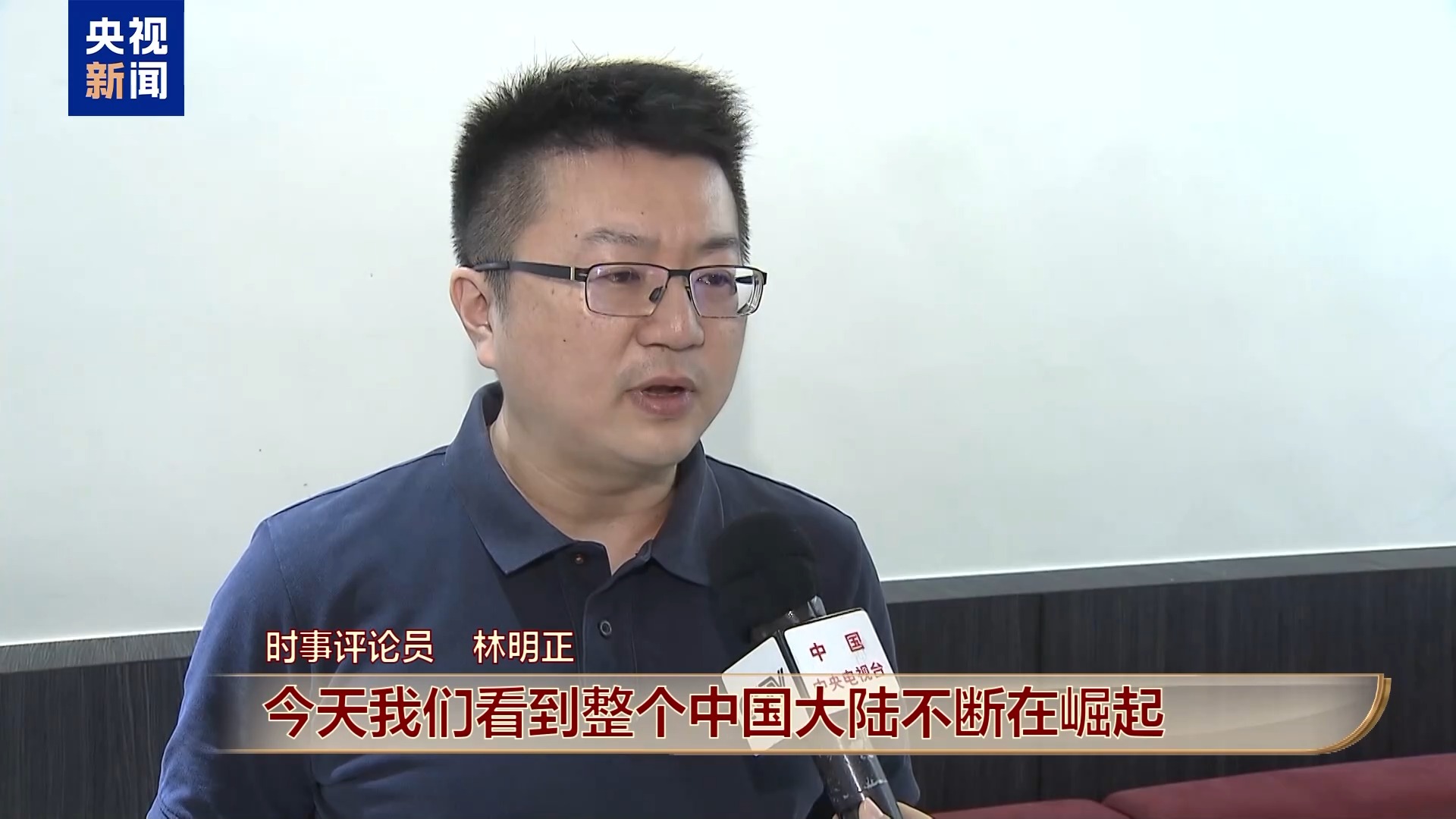 时事评论员 林明正:今天我们看到整个中国大陆不断在崛起,整个中华民族在复兴。身为中国人,哪一个能不感到与有荣焉呢?随着中华民族不断复兴,整个中国的综合国力不断提升,期待实现完全统一的那一天能够真正到来。