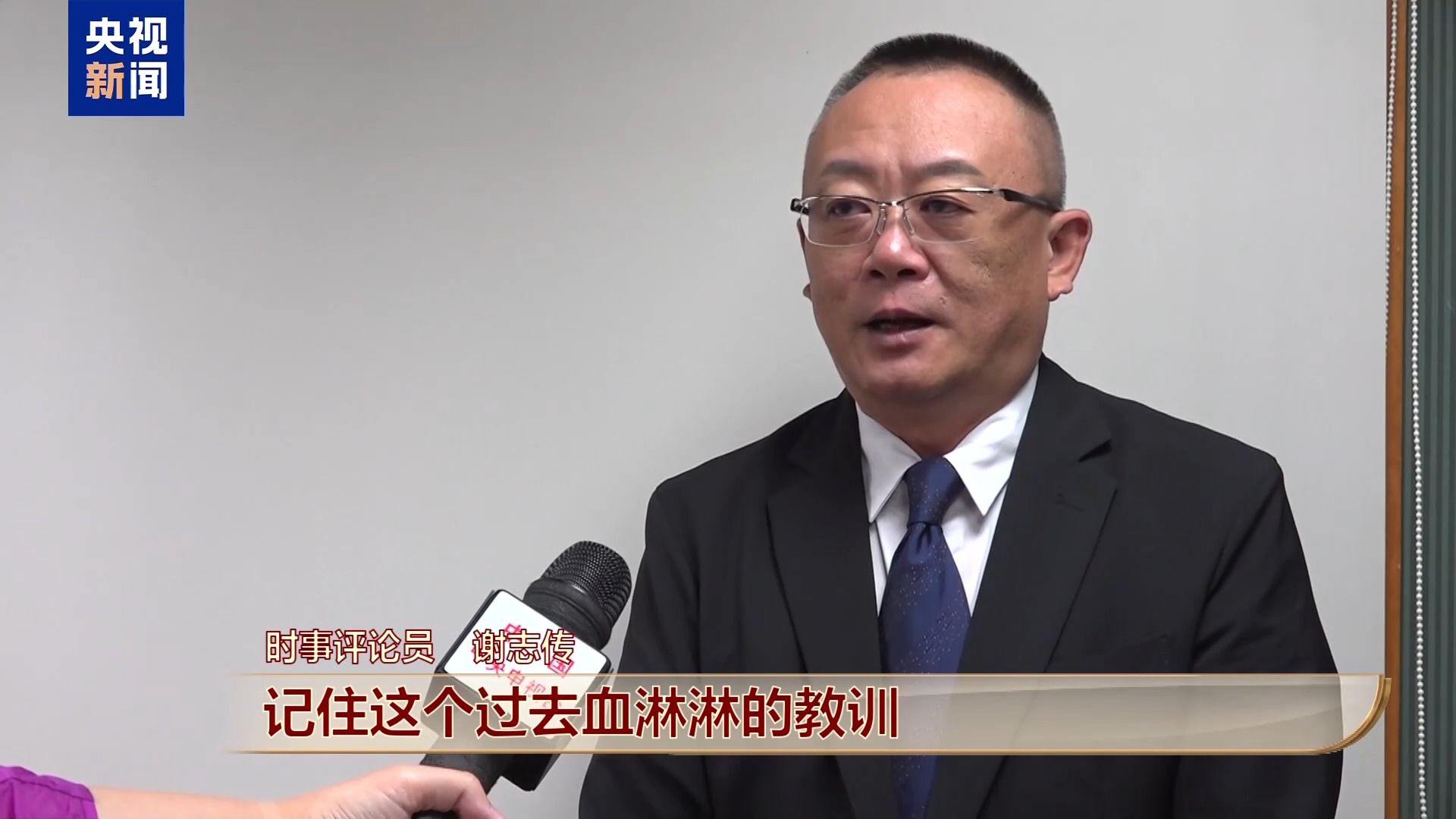 时事评论员 谢志传:让中华民族所有人记住过去血淋淋的教训,勿忘历史。这次阅兵,我相信可以让很多人觉得中华民族的确强大了、的确站起来了。这次阅兵是要让所有在80年前,经历过那场浩劫的人记住一件事情:珍惜和平,和平来之不易。同时也要警醒那些曾经实施过侵略行为的国家,警告他们不要重蹈覆辙,同时也希望他们能够深思反省。