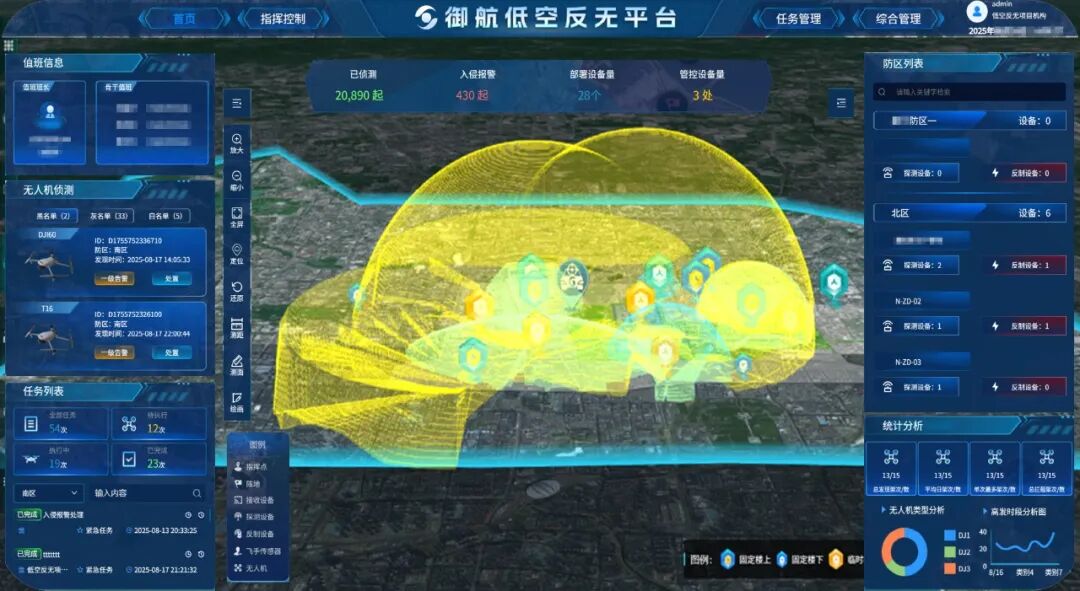 据了解,面对无人机带来的“探测难度极高、处置响应要求极严、复杂环境适应性不足、反制手段可能误伤”等多重安全挑战,中科星图“御航·低空反无平台”以“全域感知、智能防控、体系作战” 为核心,融合数字地球、人工智能与低代码技术,实现对低空威胁的“看得全、判得准、打得快”。