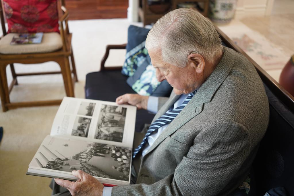 8月11日,史迪威外孙伊斯特布鲁克在家中翻看画册。新华社记者 吴晓凌 摄