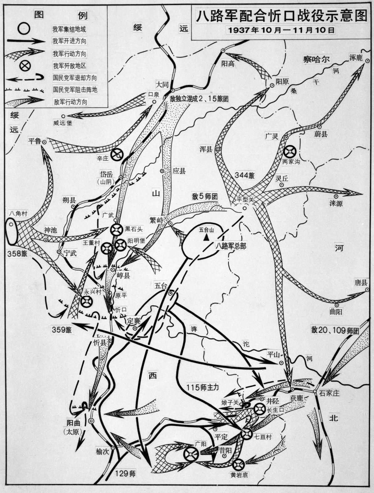 八路军配合忻口战役示意图。