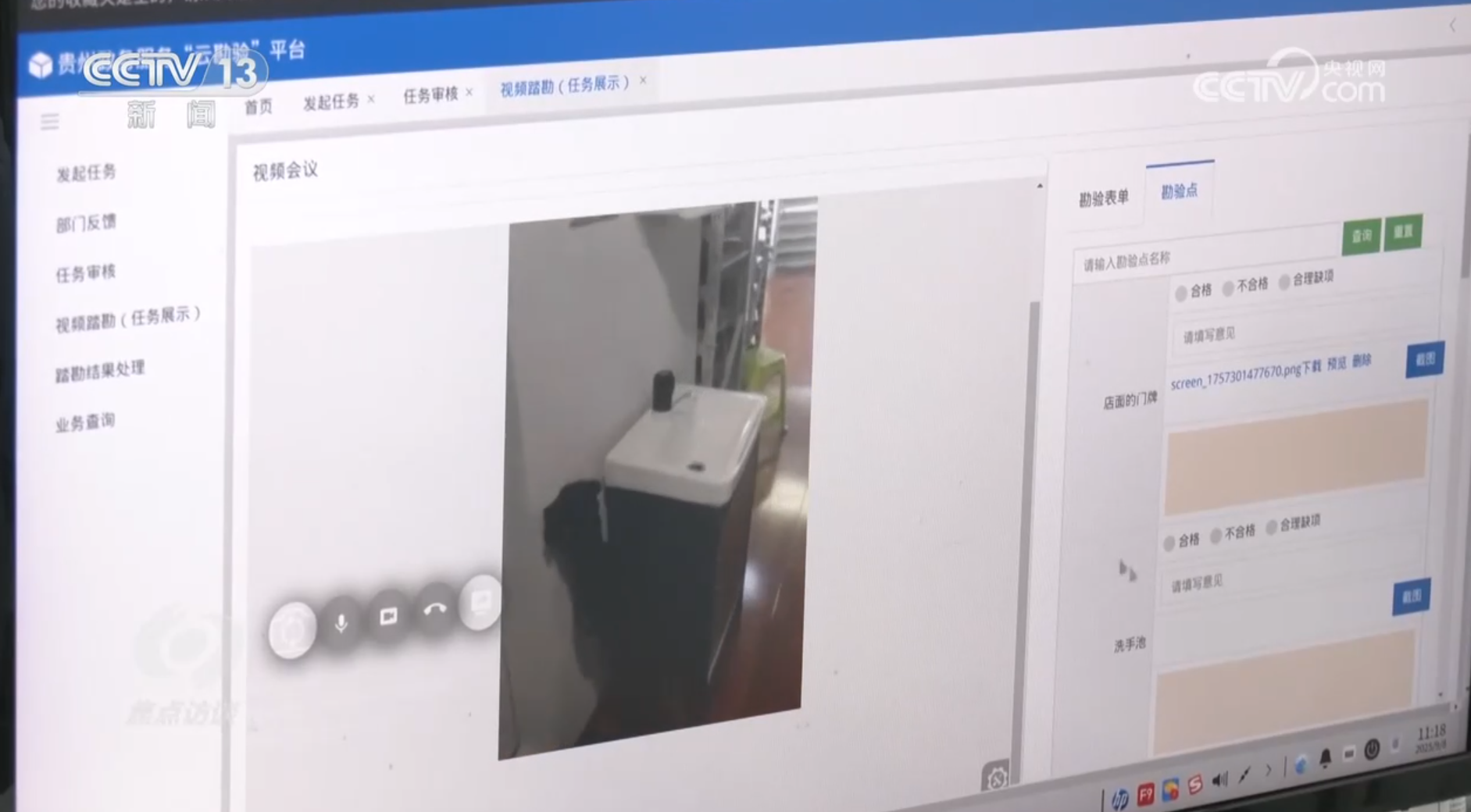 在贵阳一家准备开业的眼镜店里,店员通过视频连线,按照政务服务中心工作人员的要求,用手机拍摄门店环境、验光设备等各个细节。工作人员远程进行核查,截图留存,完成了第三类医疗器械许可申请的现场勘验。