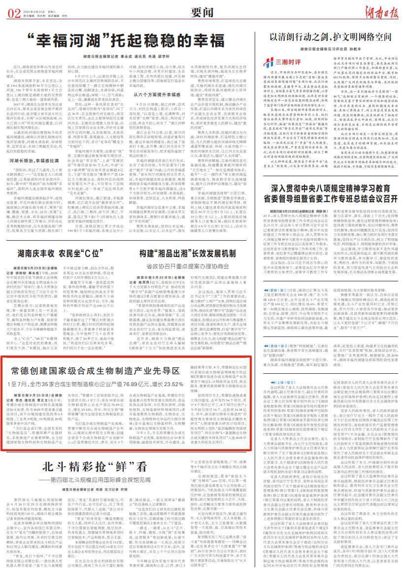 今年1月,为支持常德市合成生物制造产业发展,省政府出台10条专项措施,涵盖技术研发、平台建设、金融政策等方面。8月,常德制定出台国内首部合成生物制造领域地方性法规《常德市促进合成生物制造产业发展若干规定》,从财政资金支持、助企服务、要素资源保障等方面提供法治保障。