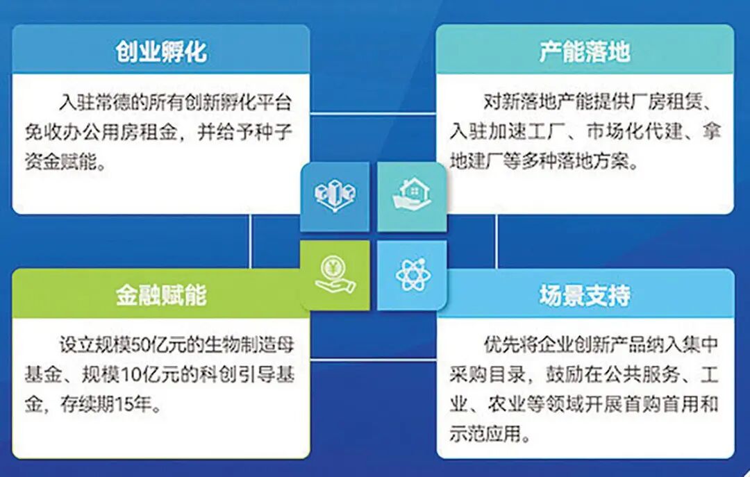 精准落策:制定《常德市支持合成生物制造产业发展的若干措施》等政策,瞄准产业发展痛点,从支持政策、金融服务、平台支撑、要素供给等方面给予支持。