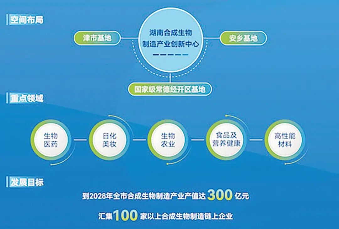 常德市编制出台《常德市合成生物制造产业发展规划(2024—2028)》,明确到2028年,基本建成具有全国影响力的合成生物制造新高地、成果转移转化首选地、产城融合发展示范地。