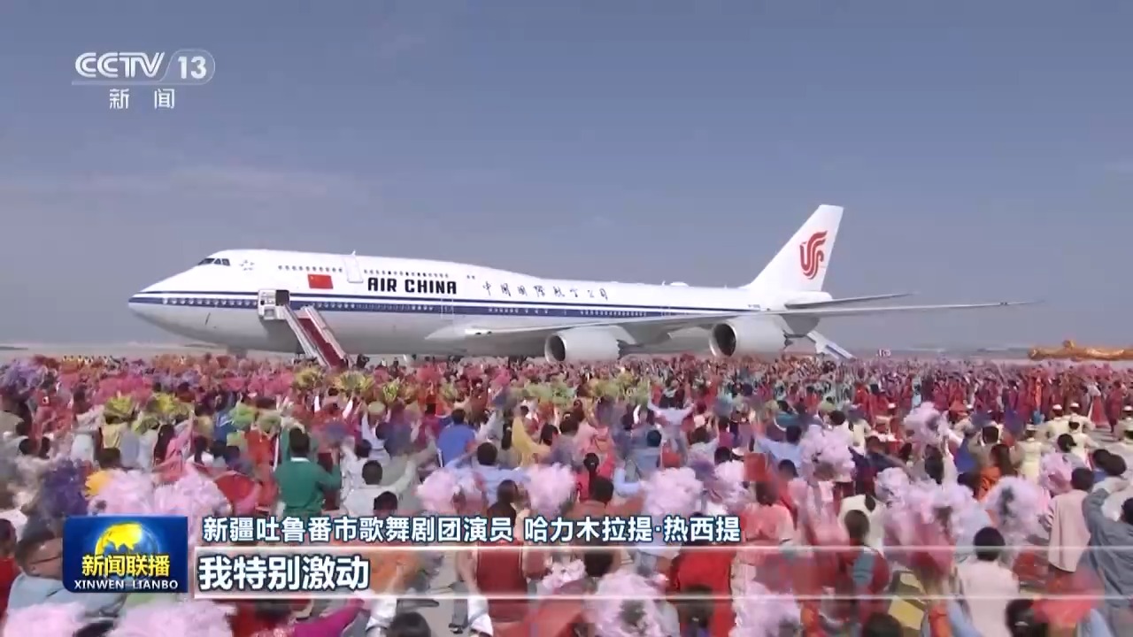 新疆吐鲁番市歌舞剧团演员 哈力木拉提·热西提:特别开心见到总书记,我特别激动,我眼泪都流出来了。我的家乡变化很大,各民族像一家人一样、像石榴籽一样团结到一起,感谢总书记的关心和关怀。