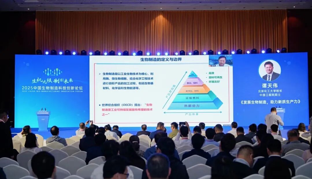 9月25日,2025中国生物制造科技创新论坛在湖南常德开幕。论坛上,中国工程院院士,北京化工大学校长、教授,中国可再生能源学会理事长谭天伟发表了以“发展生物制造,助力新质生产力”为主题的演讲。