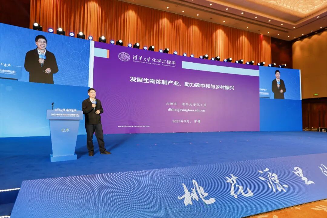 9月25日至26日,2025中国生物制造科技创新论坛在湖南常德举行。论坛上,加拿大工程院外籍院士、清华大学化学工程系应化所所长、教授刘德华围绕“发展生物炼制产业,助力碳中和与乡村振兴”主题展开分享。