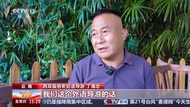 西双版纳老挝语导游 丁海忠:作为外语导游,收入是增加的。我们服务于外国友人,把自己的家乡推出去是一件非常自豪的事情。