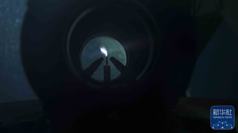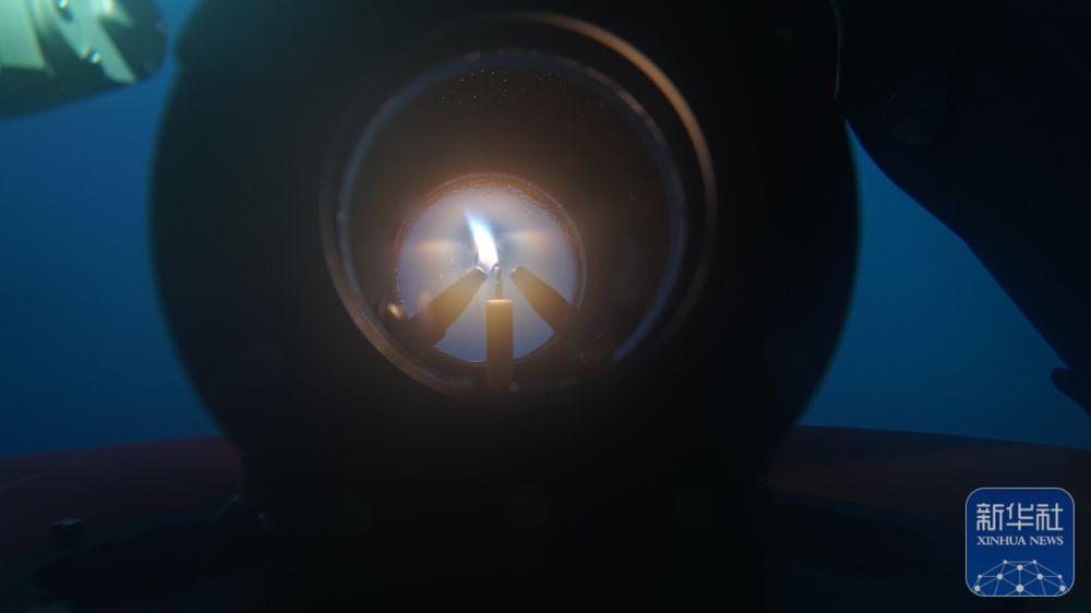 ↑9月18日 采火装置在海底成功引燃“源火”。(广州海洋地质调查局供图,闫樨霖 摄)