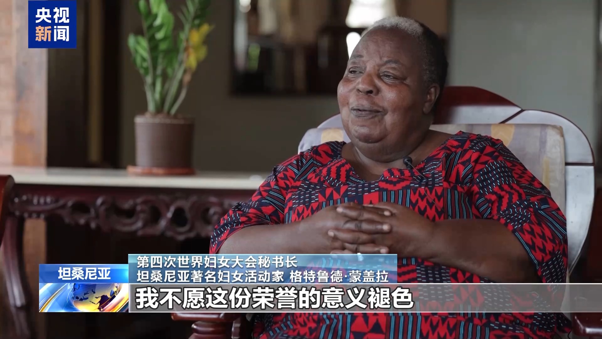 第四次世界妇女大会(北京世妇会)秘书长、坦桑尼亚著名妇女活动家蒙盖拉夫人日前在坦桑尼亚接受了总台记者专访。她积极评价联合国第四次世界妇女大会具有里程碑意义,以及中国在推动全球妇女事业发展中做出的不懈努力。