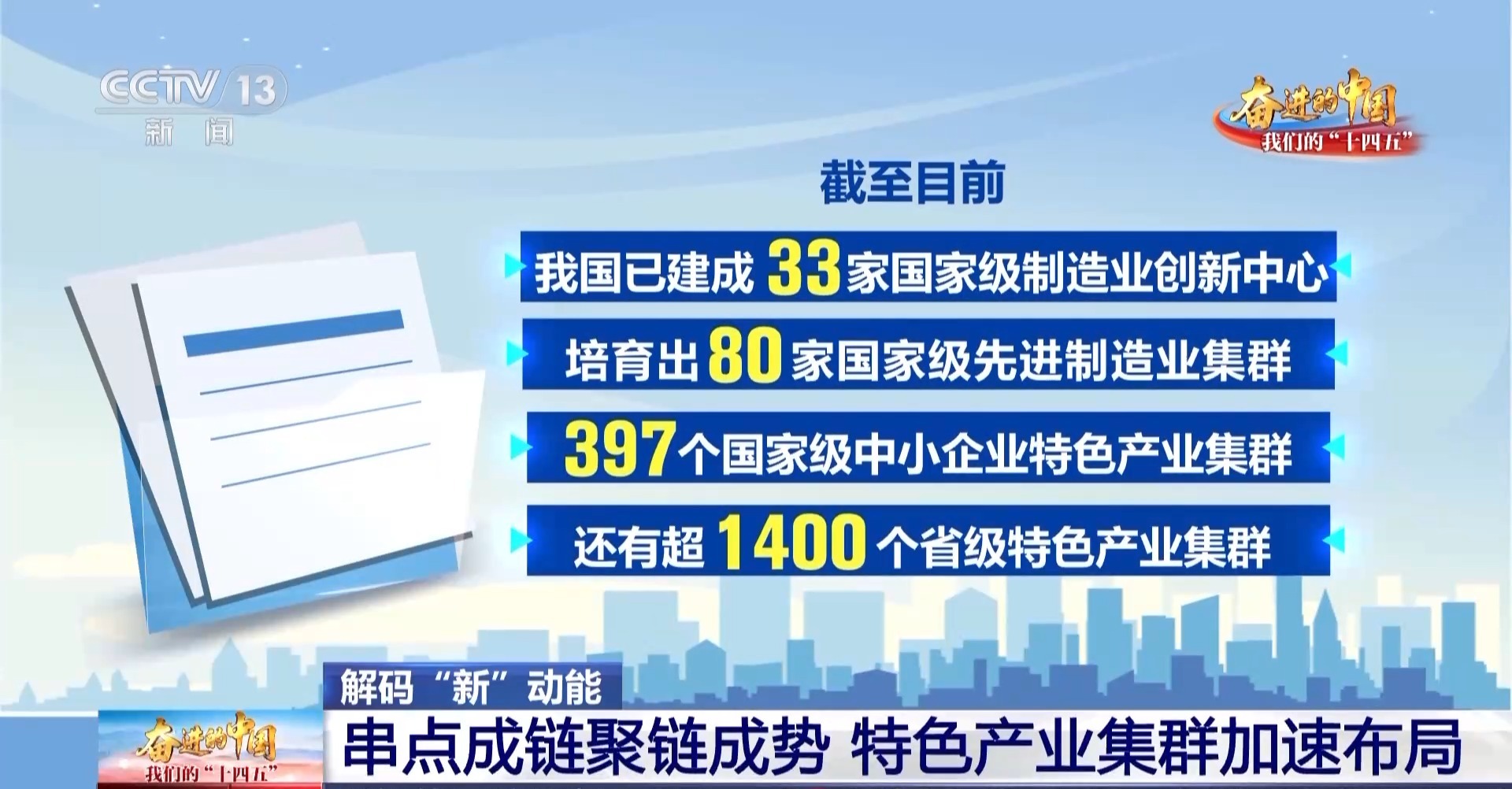截至目前,我国已建成33家国家级制造业创新中心,培育出80家国家级先进制造业集群、397个国家级中小企业特色产业集群,还有超1400个省级特色产业集群,覆盖了新一代信息技术、高端装备、新材料、生物医药等多个领域,形成了“各有特色、协同发展”的产业格局。