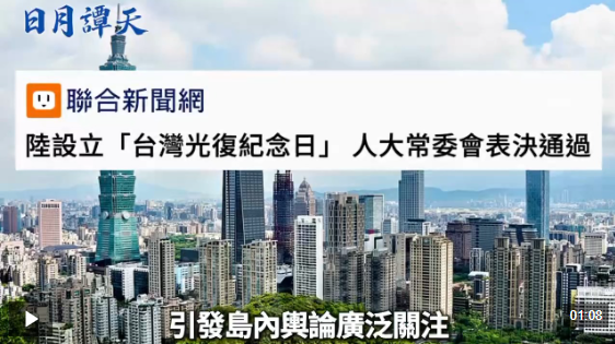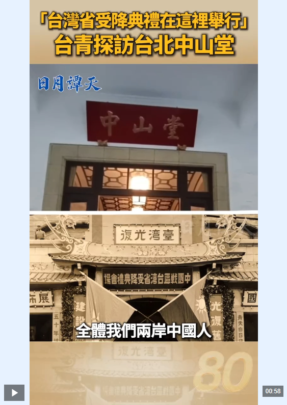 谭主注意到,连日来,两岸都举办了形式多样的活动纪念台湾光复80周年。尤为令人感动的是,即便面对民进党当局的阻挠打压,岛内有识之士也没有退缩。台湾中华文化永续发展基金会日前在当年台湾省受降典礼会场——台北市中山堂光复厅举办诗歌朗诵会,台北市长蒋万安出席并表示,不会忘记先辈先人用生命付出以及负重前行光复了台湾。在另一场岛内主题研讨会上,主办方表示,活动意在让社会重新理解台湾光复的真实意义,并把这段历史转化为推动两岸和平与台湾繁荣的实际力量。25日,纪念台湾光复80周年大会在北京人民大会堂隆重举行,中共中央台办、国务院台办也举办设立台湾光复纪念日招待会,岛内多个党派、团体举行集会、音乐会等,彰显两岸同胞同忆历史、捍卫成果、守护家园、共创未来,更加坚定守护中华民族共同家园。