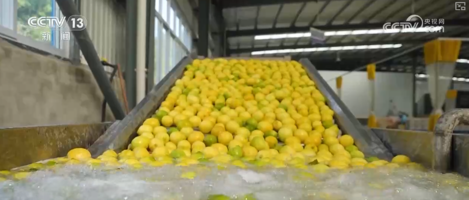 在四川简阳市雷家镇的一个柠檬园里,金黄饱满的柠檬采摘后,马上被送到果园附近的柠檬出口基地,经自动化的清洗、分拣、包装,不出两小时柠檬就处理完毕。