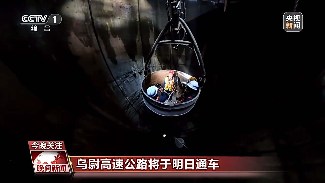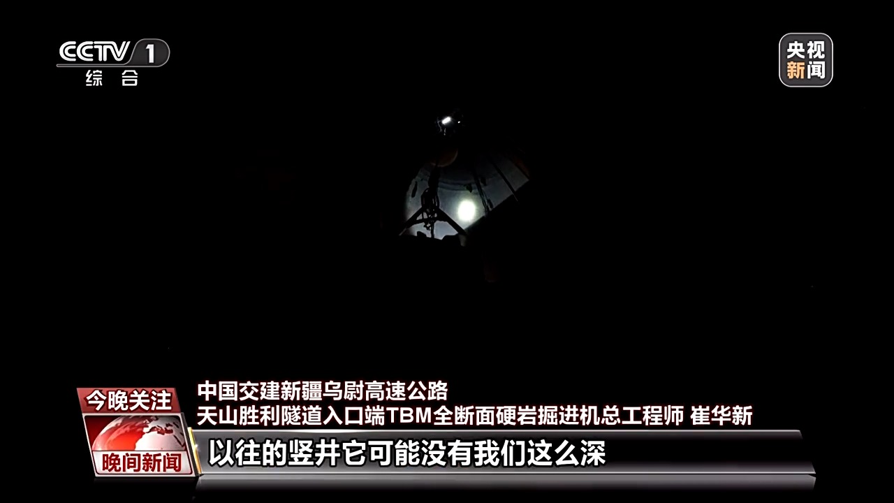 中国交建新疆乌尉高速公路天山胜利隧道入口端TBM全断面硬岩掘进机总工程师 崔华新:现在我们所处的位置,是我们竖向掘进机开挖完成之后,我们竖井的最后一道工序也就是二衬。随着我们的施工进度不断提高,我们经历黑暗的时间也是越来越短的。