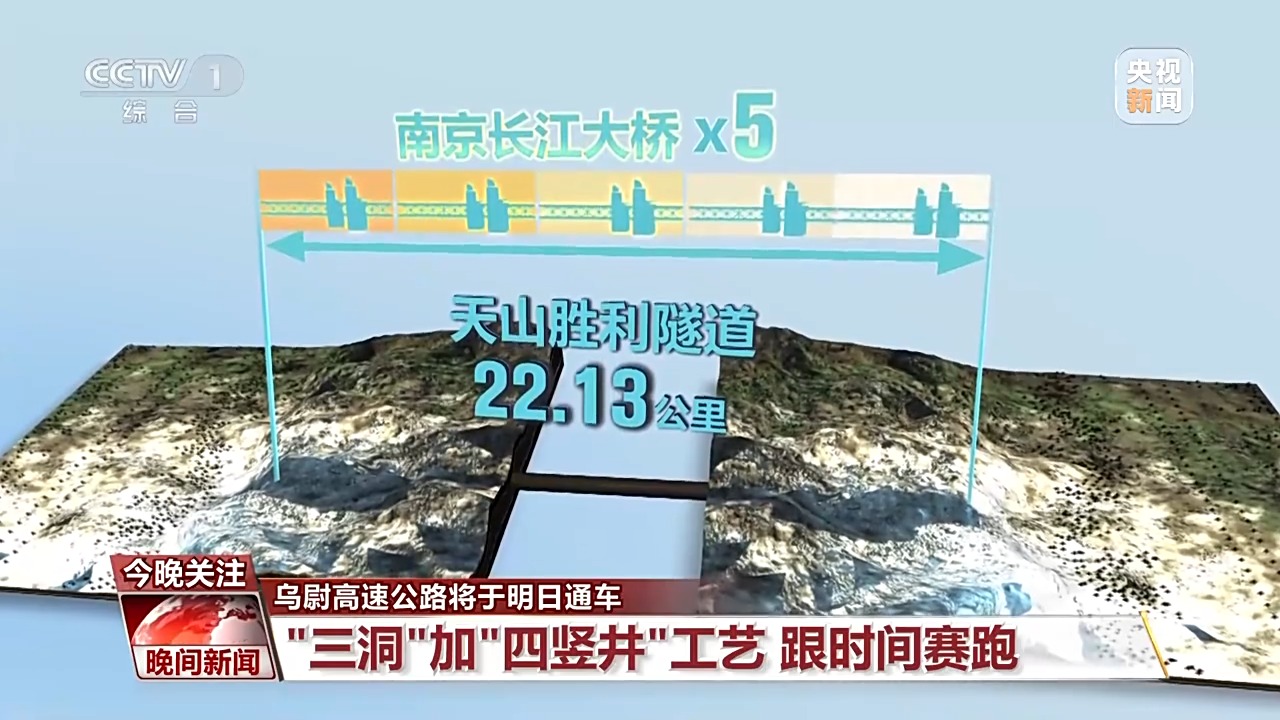 22.13公里,长度约为5座南京长江大桥的总和,要在天山中打通这样的一条隧道,中国的建设者是如何啃下这块硬骨头的呢?和以前挖隧道大多采用“双洞对挖”的方式不同,这次天山胜利隧道为了跟时间赛跑,采用“三洞”加“四竖井”工艺。