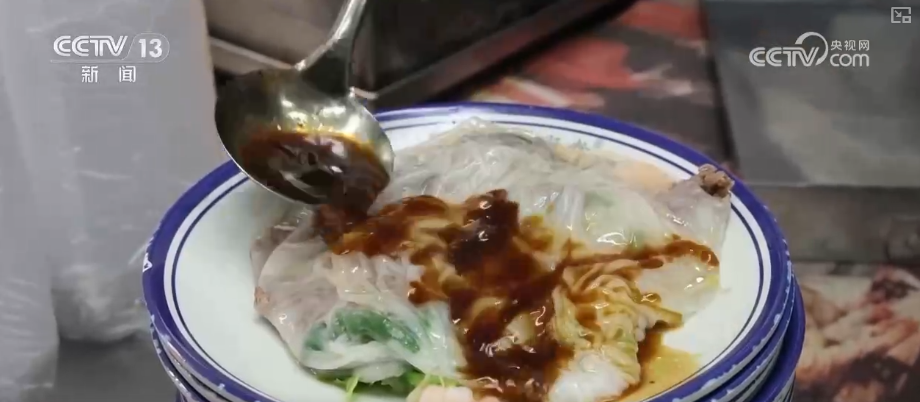 肠粉店老板陈轩豪介绍,米浆里水的比例也很关键,他们会根据当天的天气进行调整,比如天气炎热潮湿的时候,就需要少放一点水,不然蒸出来口感就会比较软烂。夏天还会放一些冰,防止米浆变质。