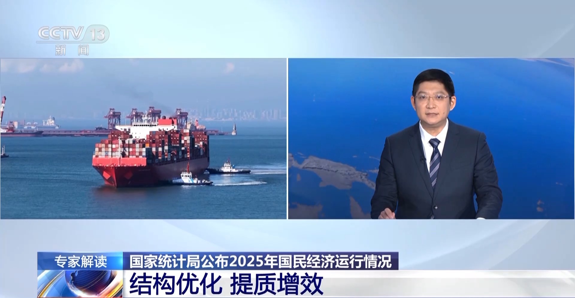 国家发展改革委国家信息中心研究员 魏琪嘉:我们看2025年整个经济运行数据反映出来的亮点,首先就是稳中有进、向新向好。这份成绩单的取得,比如说经济总量突破140万亿元大关,保持了5%的经济增长速度,充分彰显了我们超大规模经济体在发展过程当中的韧性和潜力。即便遇到风高浪急的挑战,但是外贸出口、国内产业转型升级调整的步伐都在坚定地向前迈进。