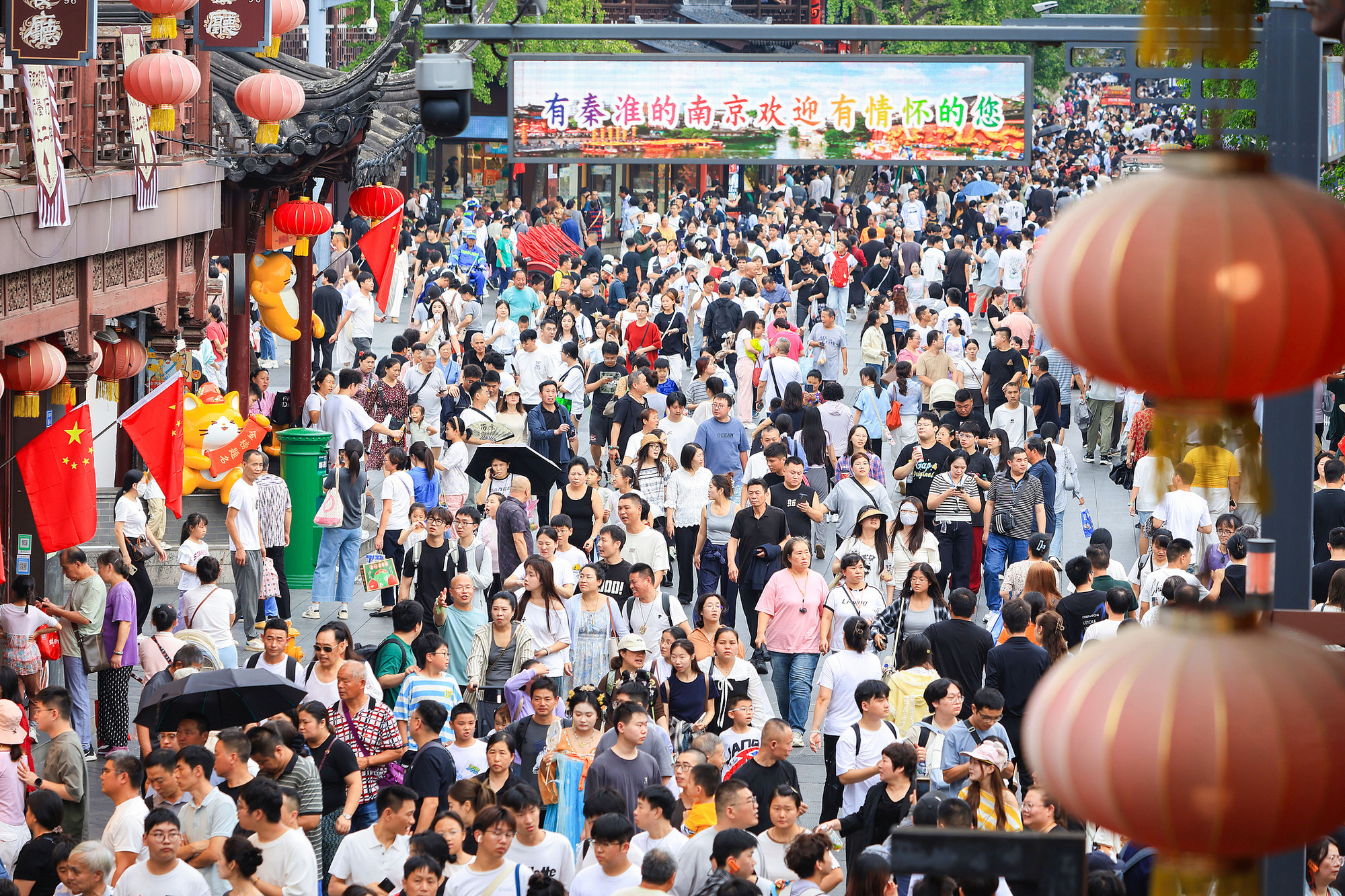 2025年10月2日,游客在南京夫子庙景区游玩