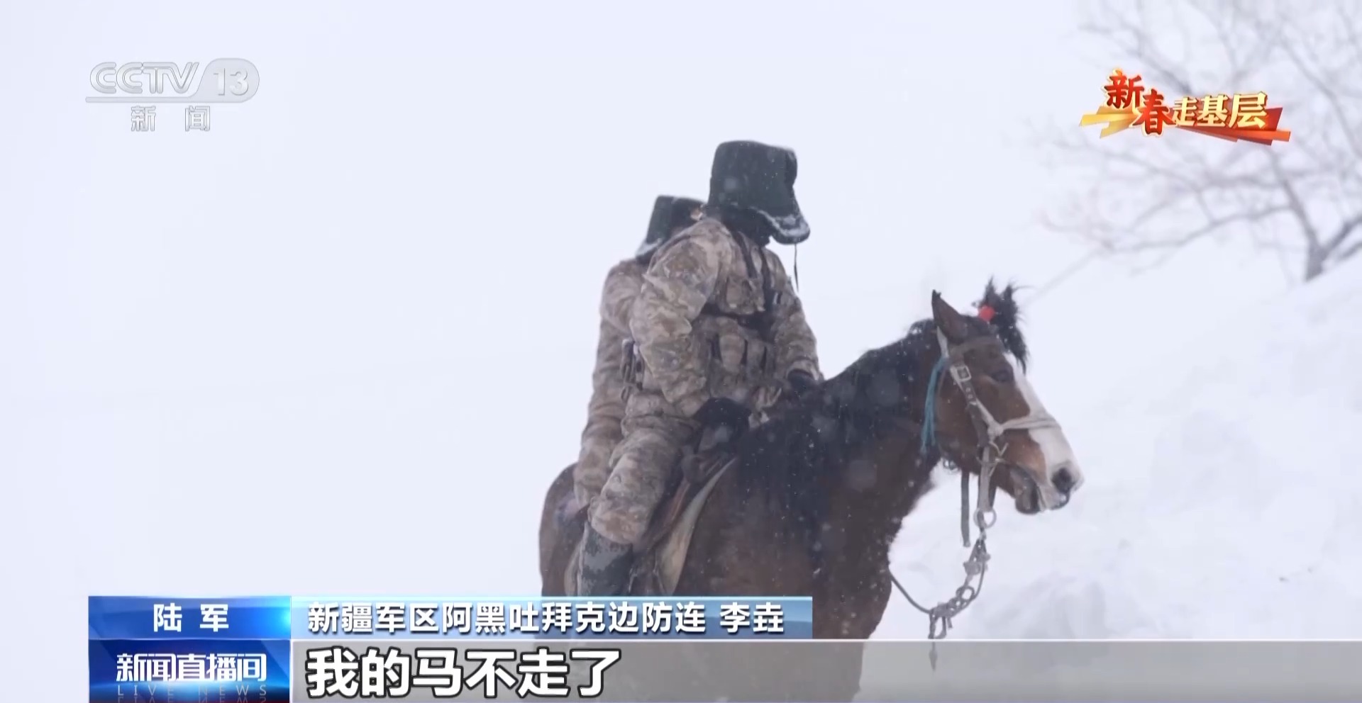 新疆军区阿黑吐拜克边防连 巴合布力:春节战备,我和我的马都不能松懈,军马也是全天背着鞍子,随时待命。在外人眼里,在边防连就是骑马、天天赶马,但是我们自己觉得,我也在时时刻刻准备为国家牺牲,非常值得。