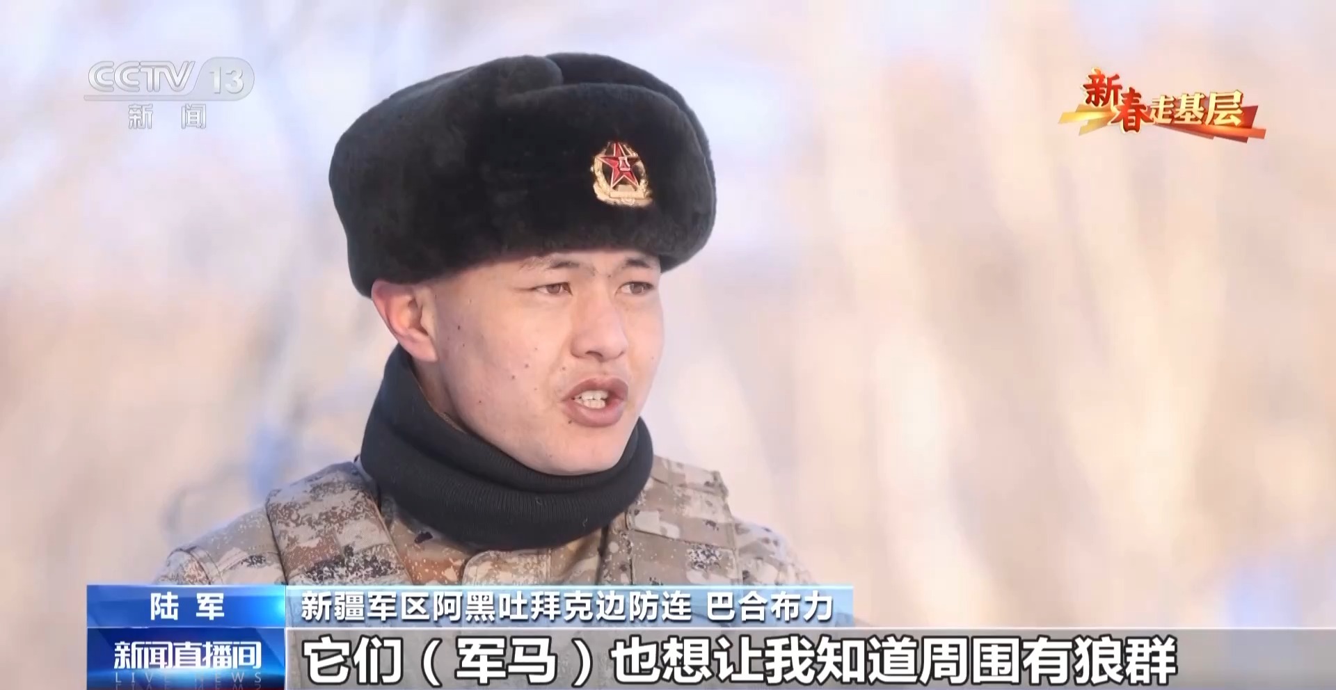 新疆军区阿黑吐拜克边防连 巴合布力:当时也很慌,快天黑了,它们想让我知道周围有狼群,给了我一个信号,感觉它们在保护我一样,心里觉得很温暖、很感动。它们也是我们的战友,不能少一个,就算受伤了,必须得一起带回来。