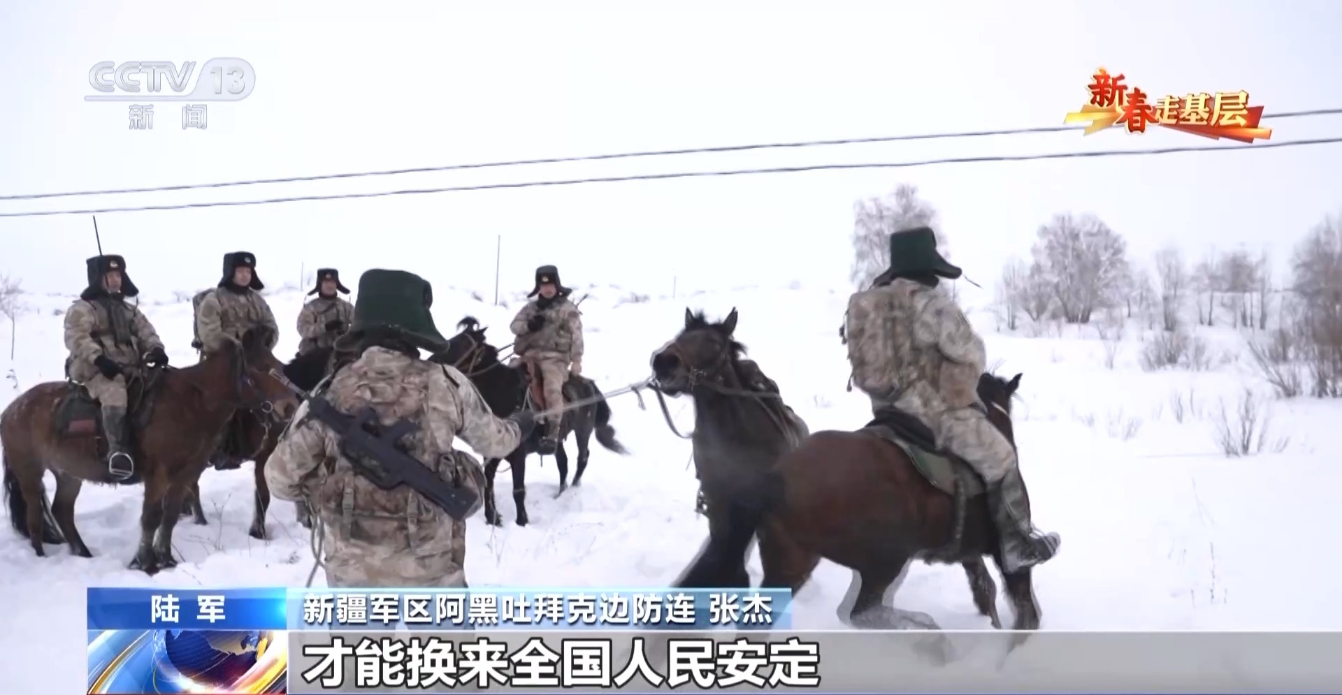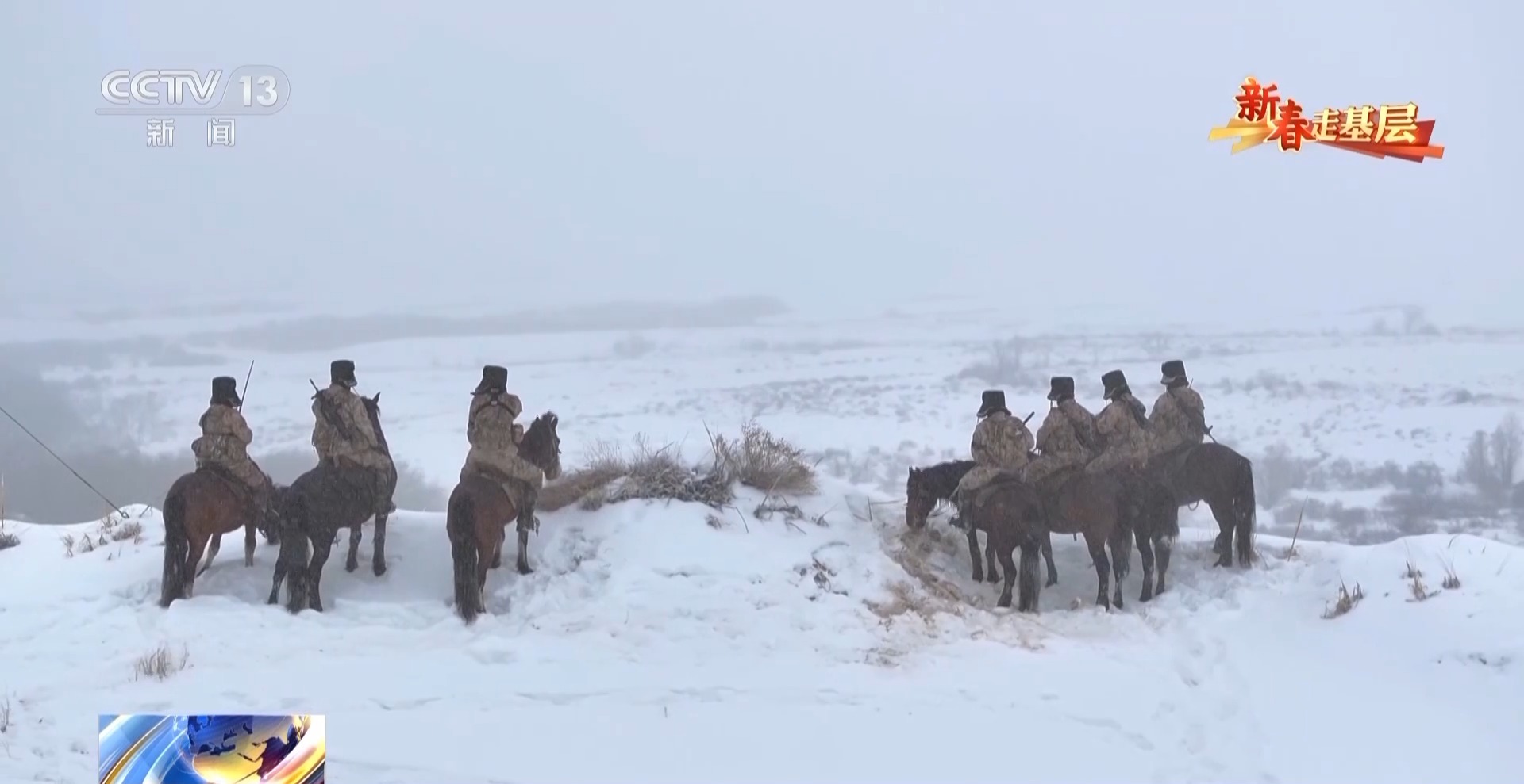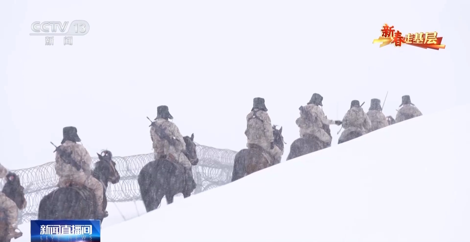 总台央视记者 刘洁:官兵们正在进行骑马巡逻的准备,每匹军马都系上了鲜艳的红头绳,给冬日的边关带来了暖暖的年味。这些军马是官兵们巡逻途中最亲密的战友,今天他们再一次踏上边防巡逻路,用坚守迎接新春。
