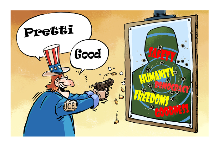 近日,美国联邦执法部门接连夺去两条人命。1月7日,ICE执法人员抓捕非法移民时,连开多枪打死美国公民蕾恩·妮科尔·古德。1月24日,在距离古德死亡现场约2公里的地方,ICE执法人员开枪打死美国籍男子亚历克斯·普雷蒂。