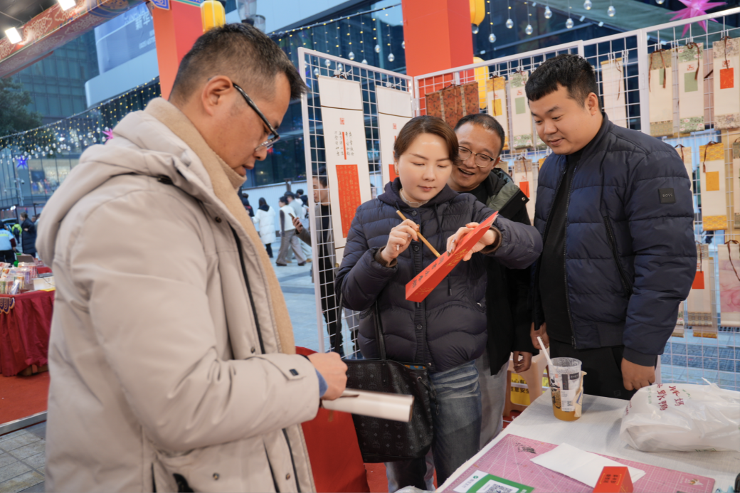 除了单纯的售卖外,现场还设置了多种传统文化互动体验,并特别邀请小朋友们担任志愿者。在写“福”字活动中,小志愿者们手握毛笔,在红纸上一笔一画认真书写福字,翰墨飘香间传递着新春的美好期许。“看着孩子对书法文化这么感兴趣,特别欣慰,这样的活动非常有意义,能很好地弘扬传统文化。”家长陈女士感慨道。