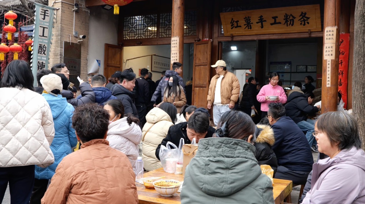 袁家村的特色之一是地道关中美食,500多家小吃店沿街排布,各类陕西特色小吃应有尽有,香气四溢。每条街上的小吃不重样,每家店铺都有自己的特色和招牌产品。凭借烟火气与民俗魅力,2025年全年,村里接待游客近1100万人次。