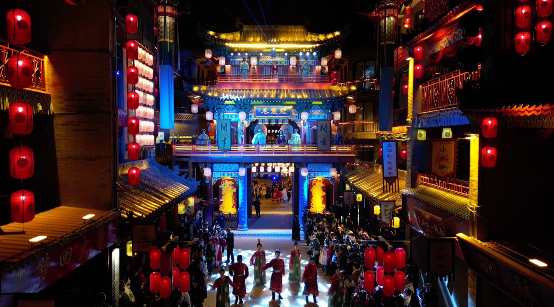 袁家村村委会副主任 郭洪江:今年大年三十晚上,我们所有的村民、商户共同举办集体过大年。初一到十五,我们每一天都会表演我们当地的民俗活动,像我们的锣鼓、高跷、舞龙、舞狮,让来袁家村的游客感受到浓浓的年味。