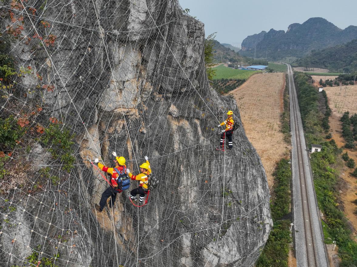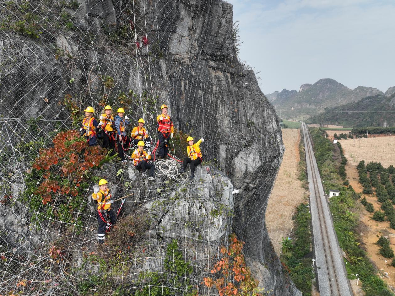 杨发登所在的南宁工务段“爬山虎”突击队,负责勘察铁路沿线137处危岩落石风险点的岩石状态,测量、拍摄、记录、处理可能影响到铁路安全的危石。