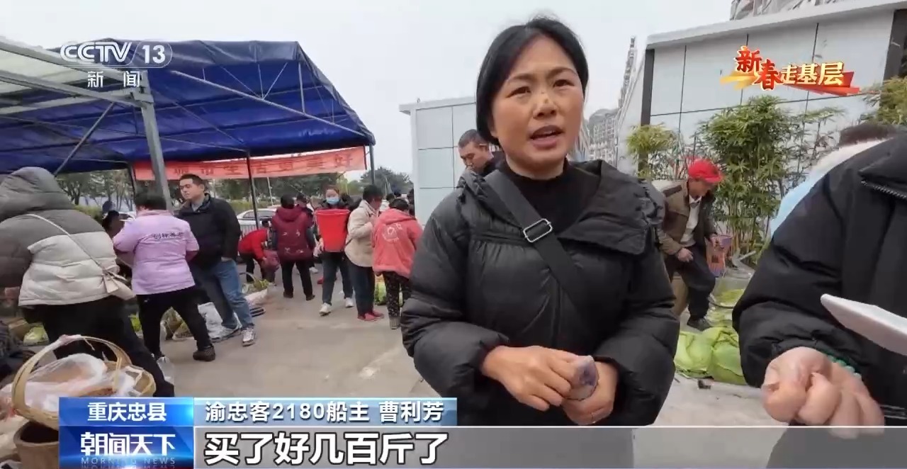 “渝忠客2180”船主 曹利芳:买了好多了,帮着买了好几百斤了,好多网友他们想要吃这边的农家菜,所以叫我们帮他买了然后寄过去。
